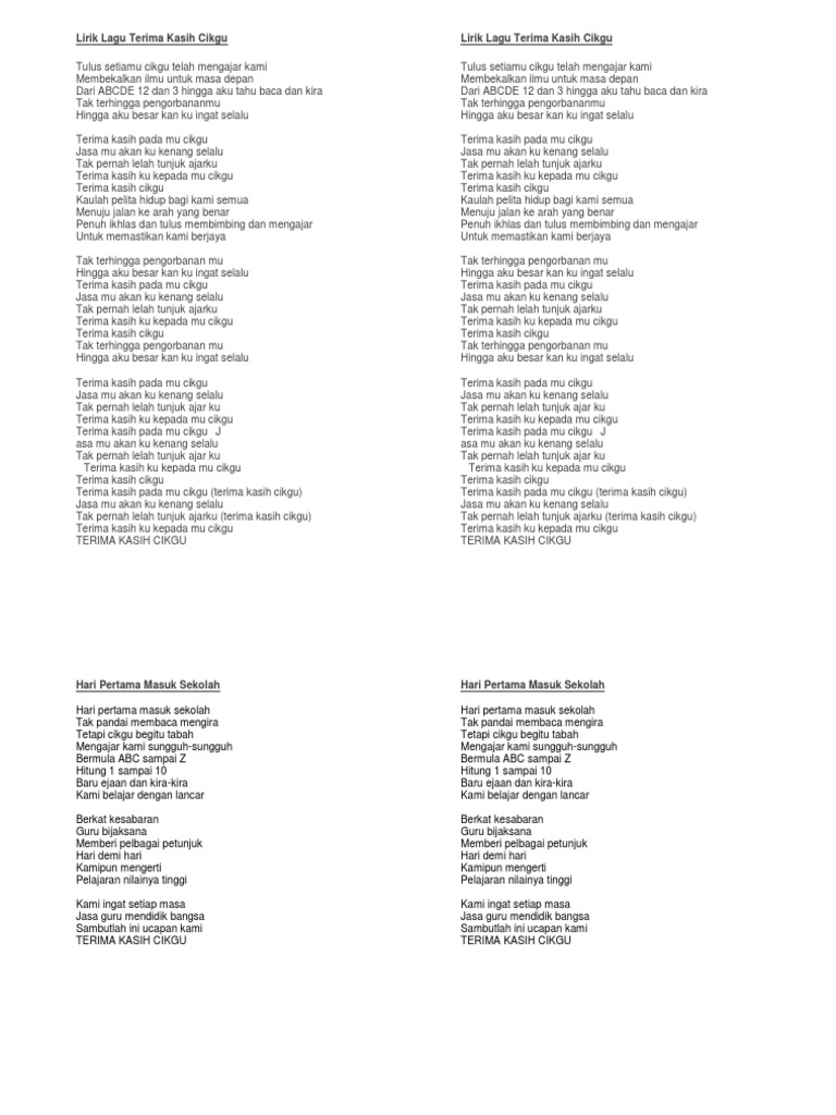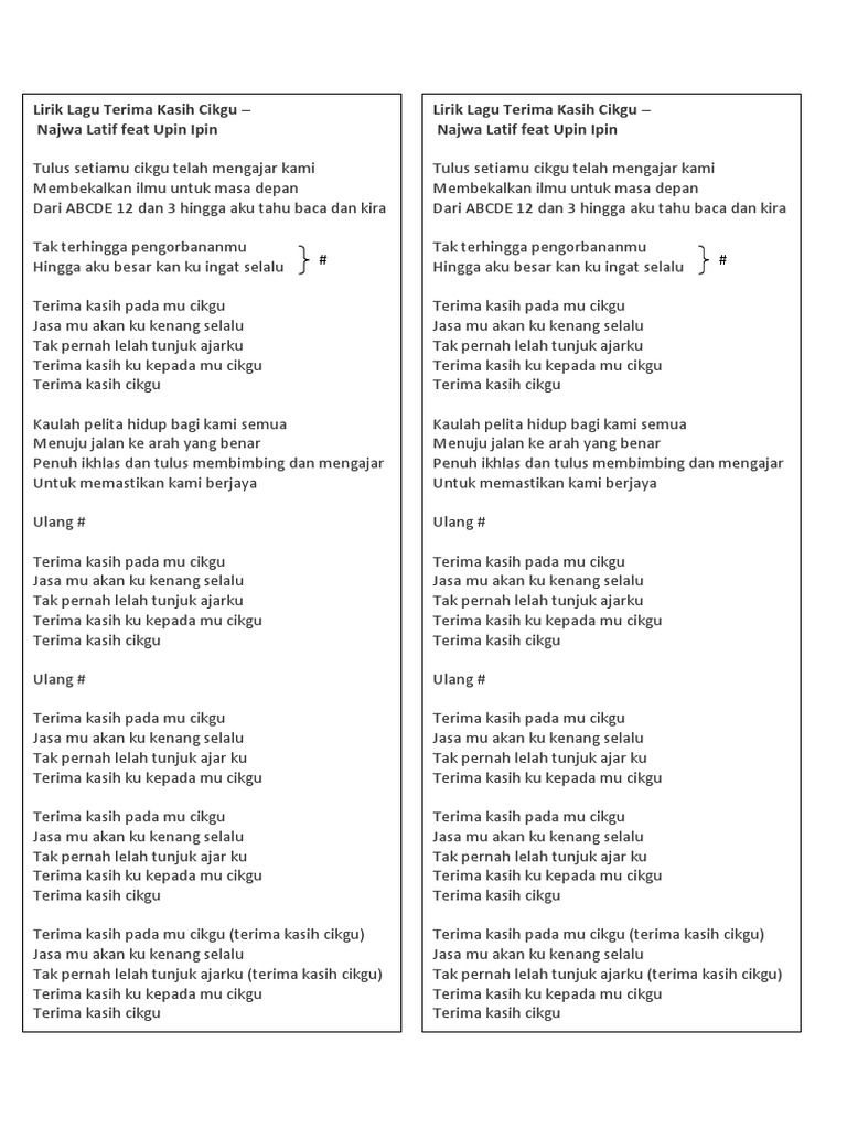 Lirik Lagu Terima Kasih Cikgu Pdf