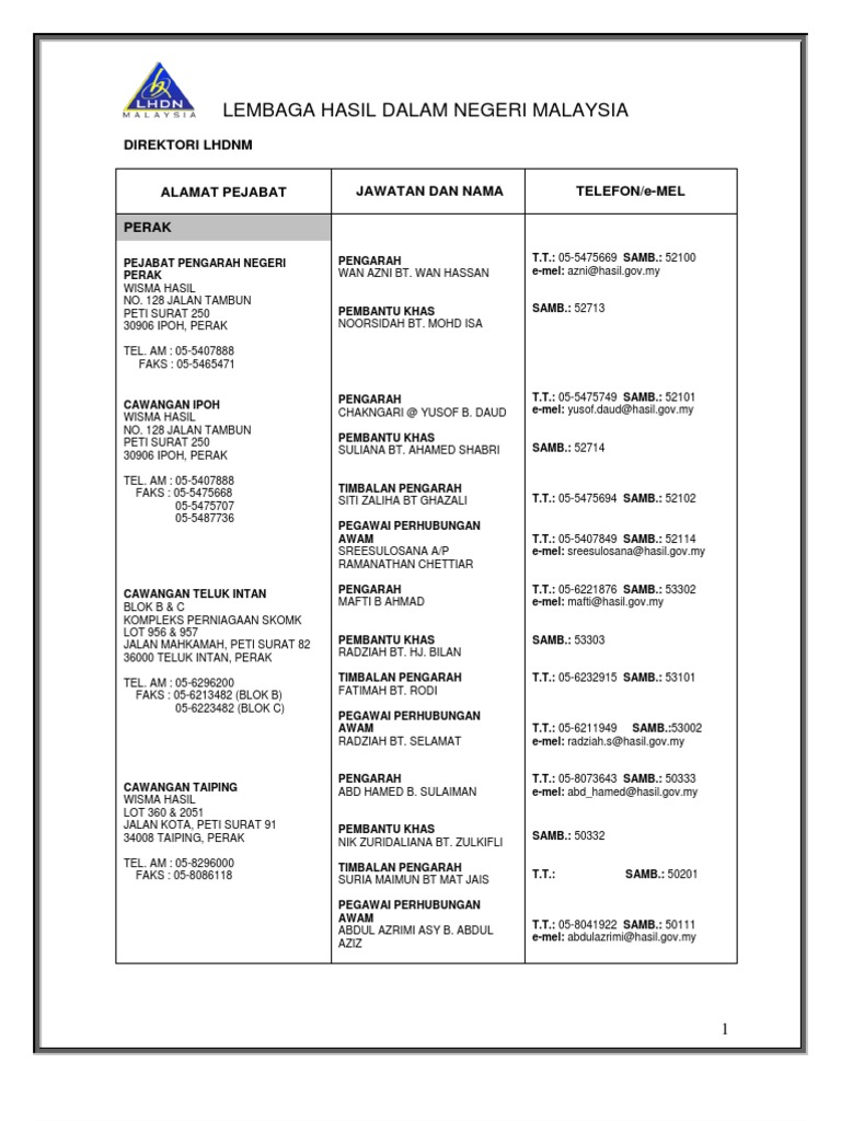 Alamat Dan Nombor Telefon Cawangan Lhdn Negeri Perak